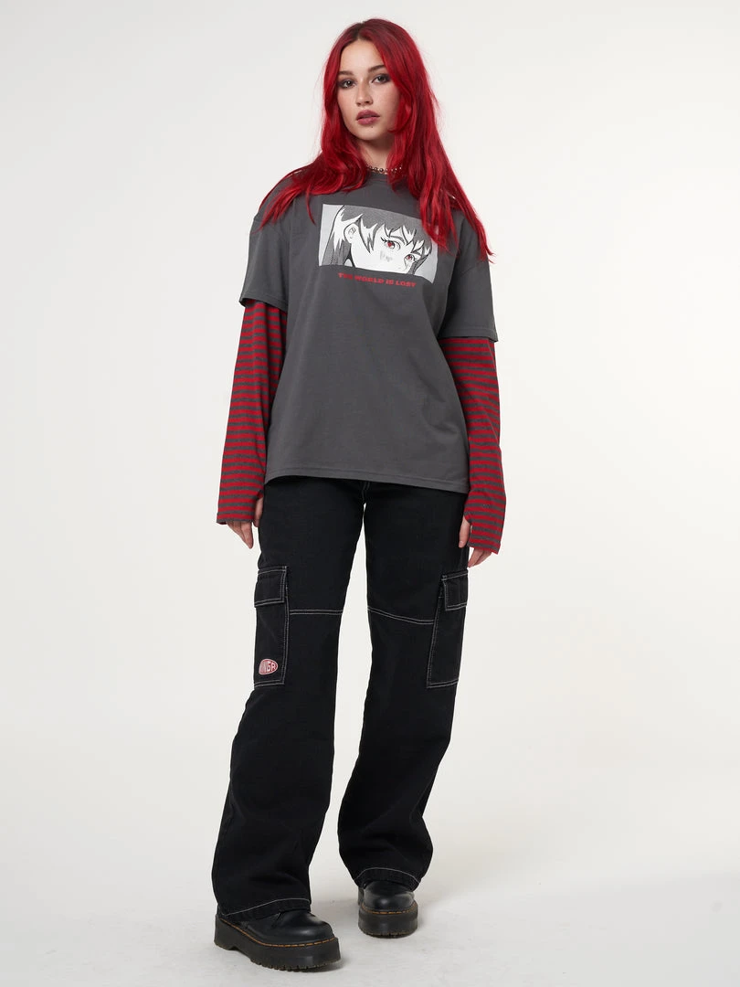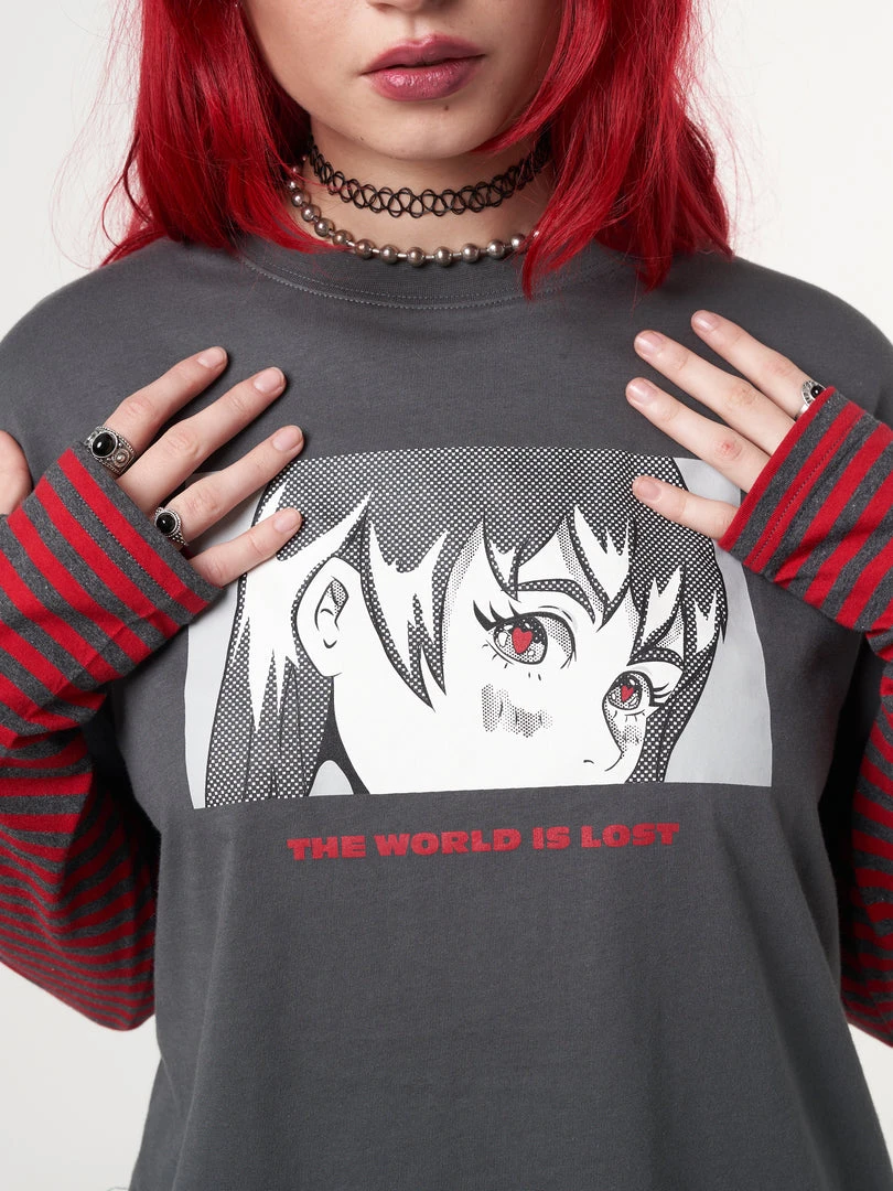 Minga London Anime Striped Oversized Long Sleeve T-shirt