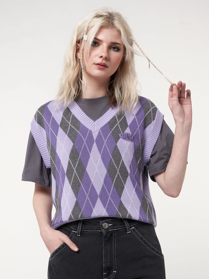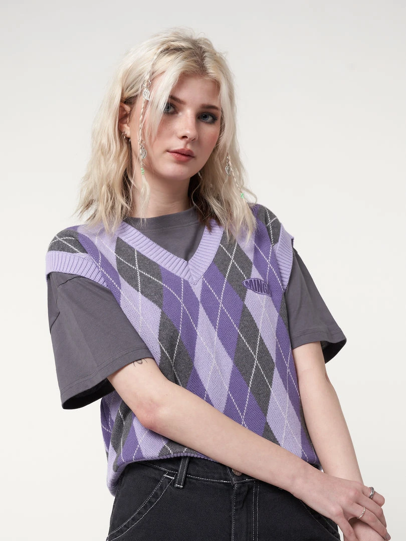 Minga London Cleo Argyle Purple Knit Vest Clothing