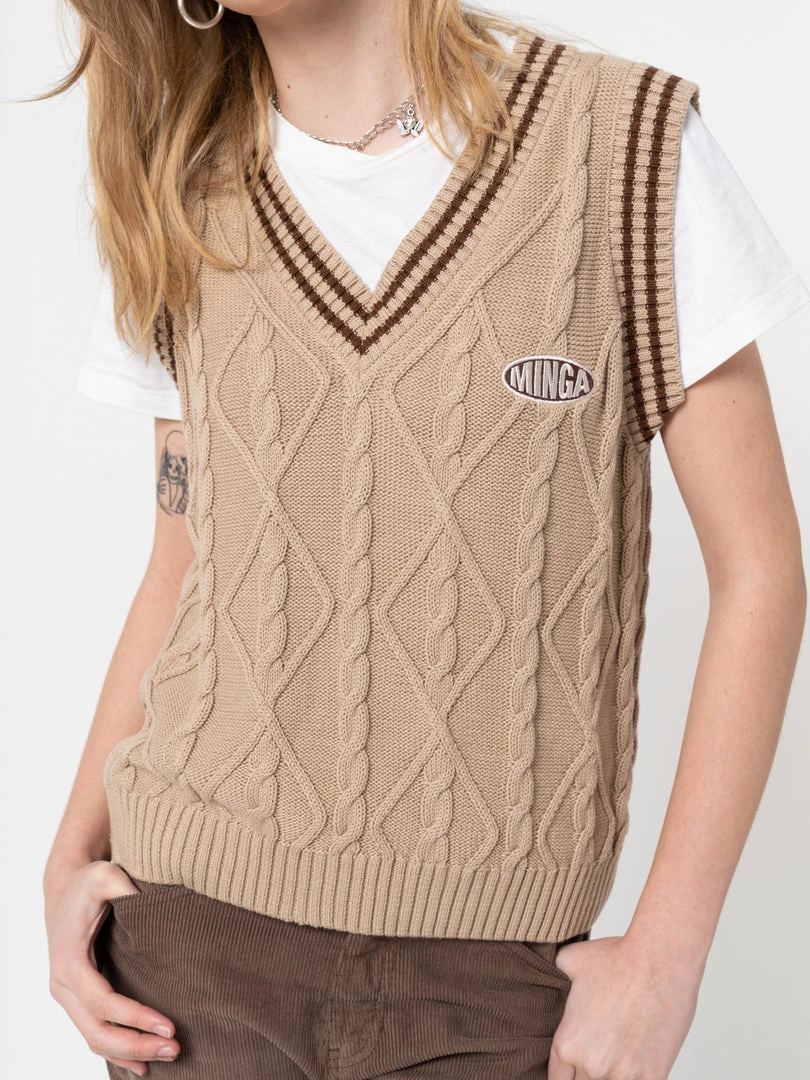 Minga London Clothing Beige Cable Knitted Sweater Vest