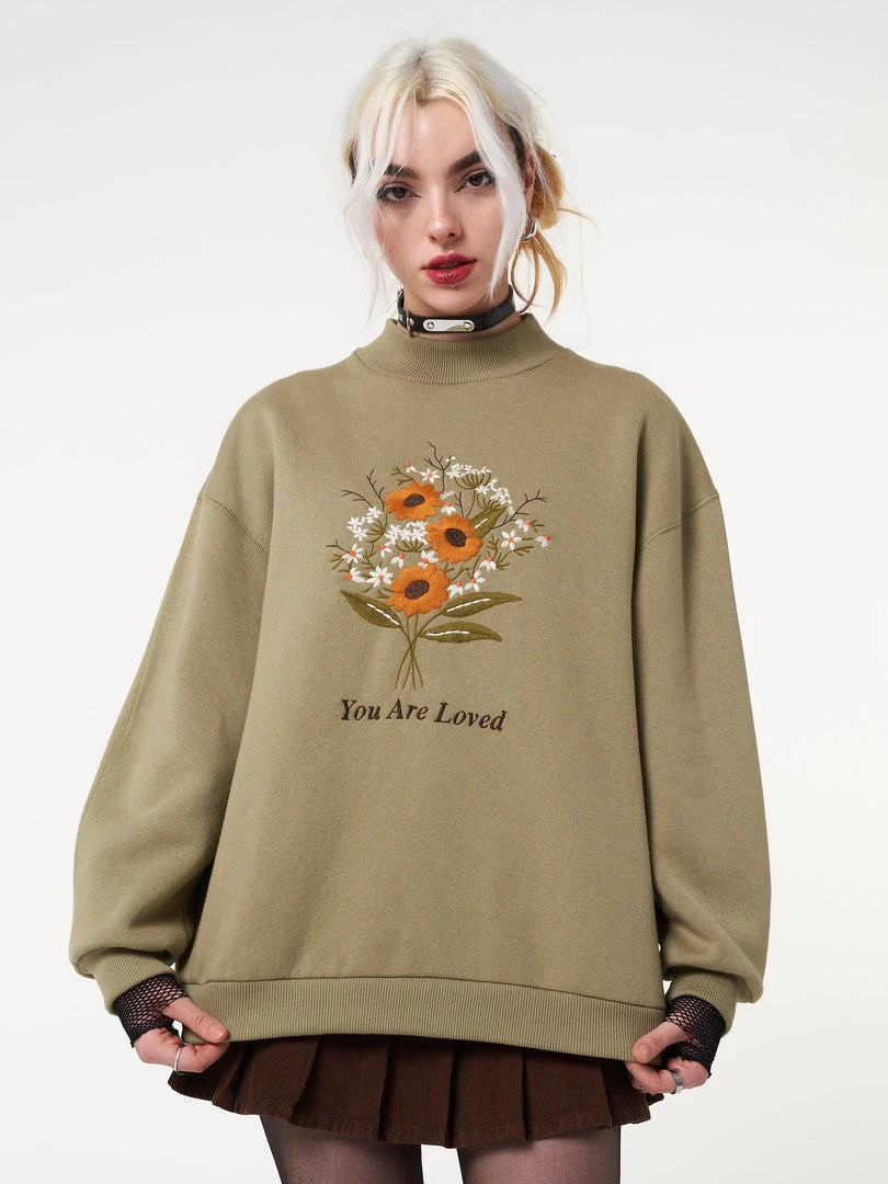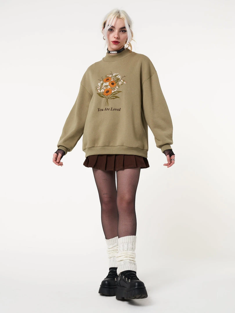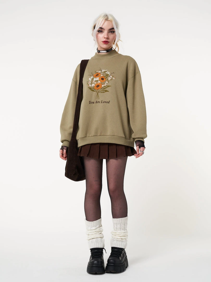 Minga London Clothing You Are Loved Flower Bouquet High Neck Sweater