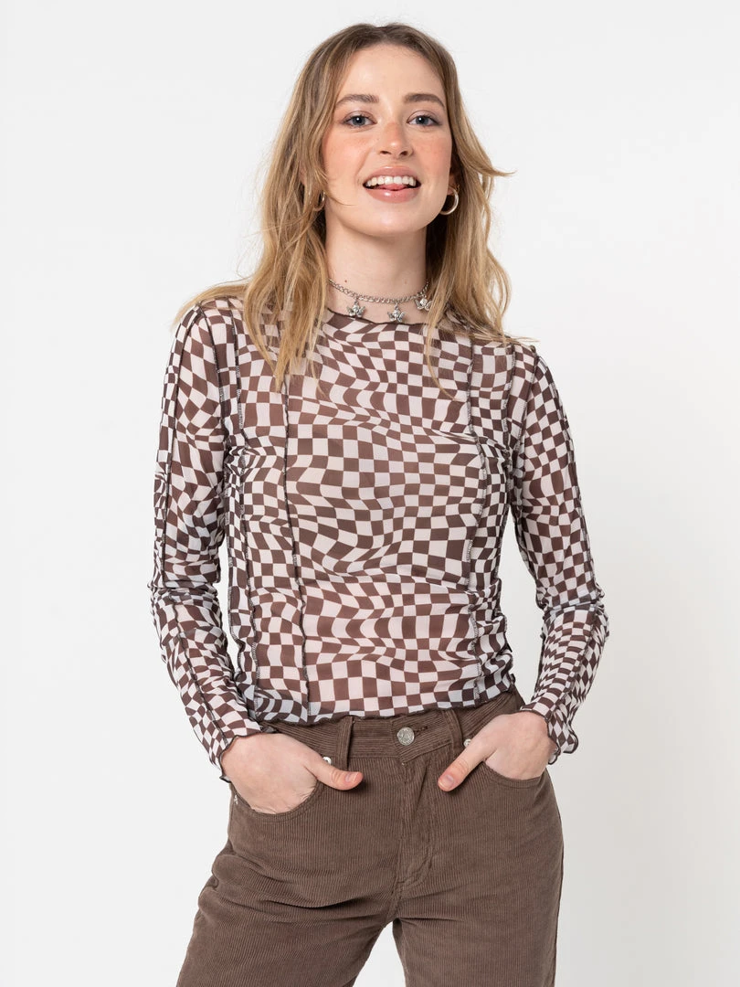 - Brown check mesh top