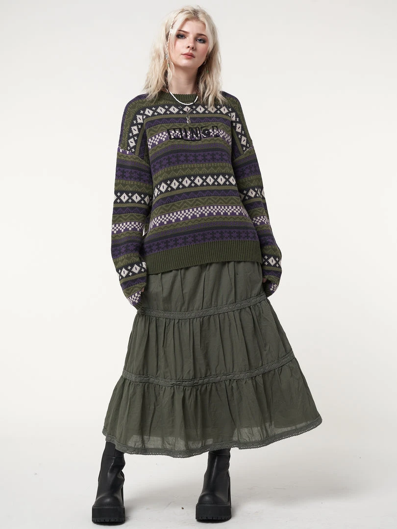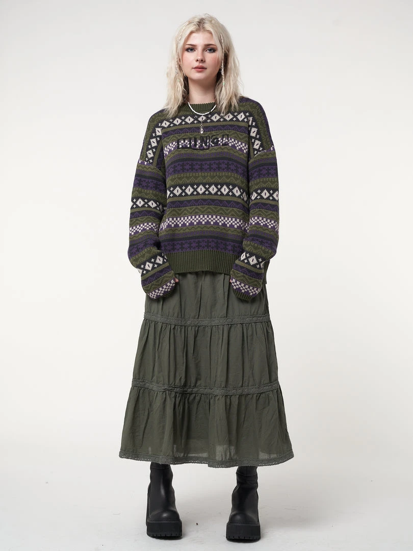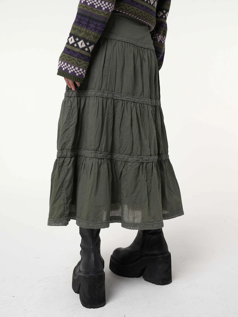 Minga London Foggy Green Ruffle Lace Maxi Skirt
