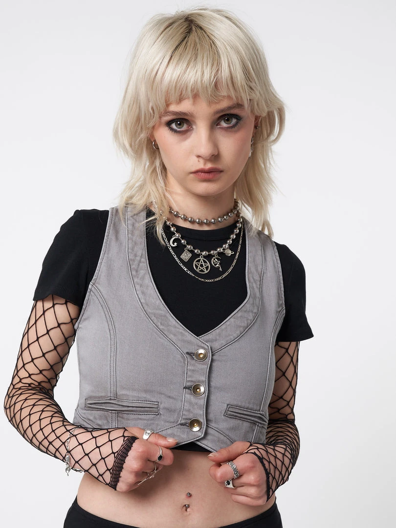 - Y2k cropped denim waistcoat