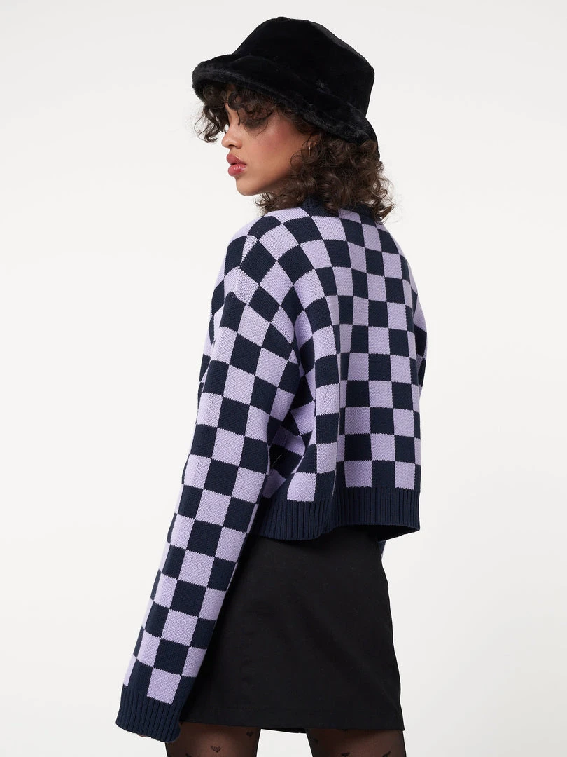 - All over check pattern in purple & blue