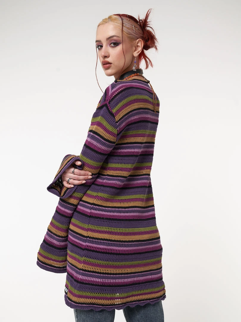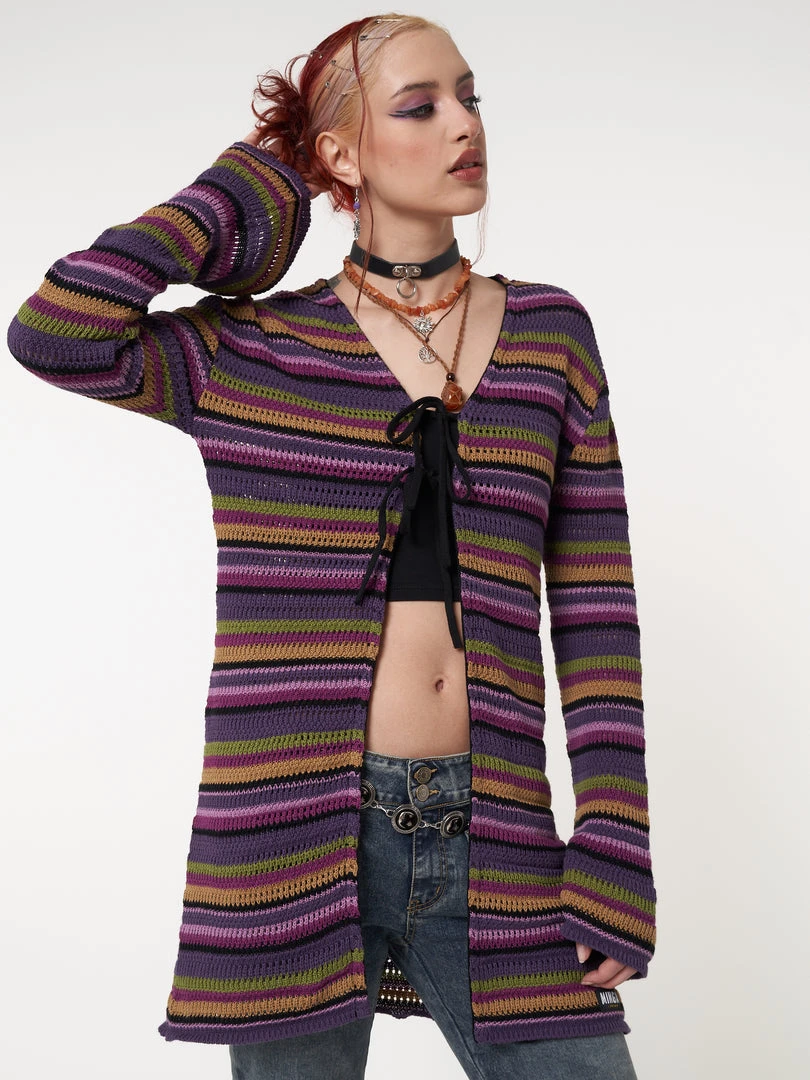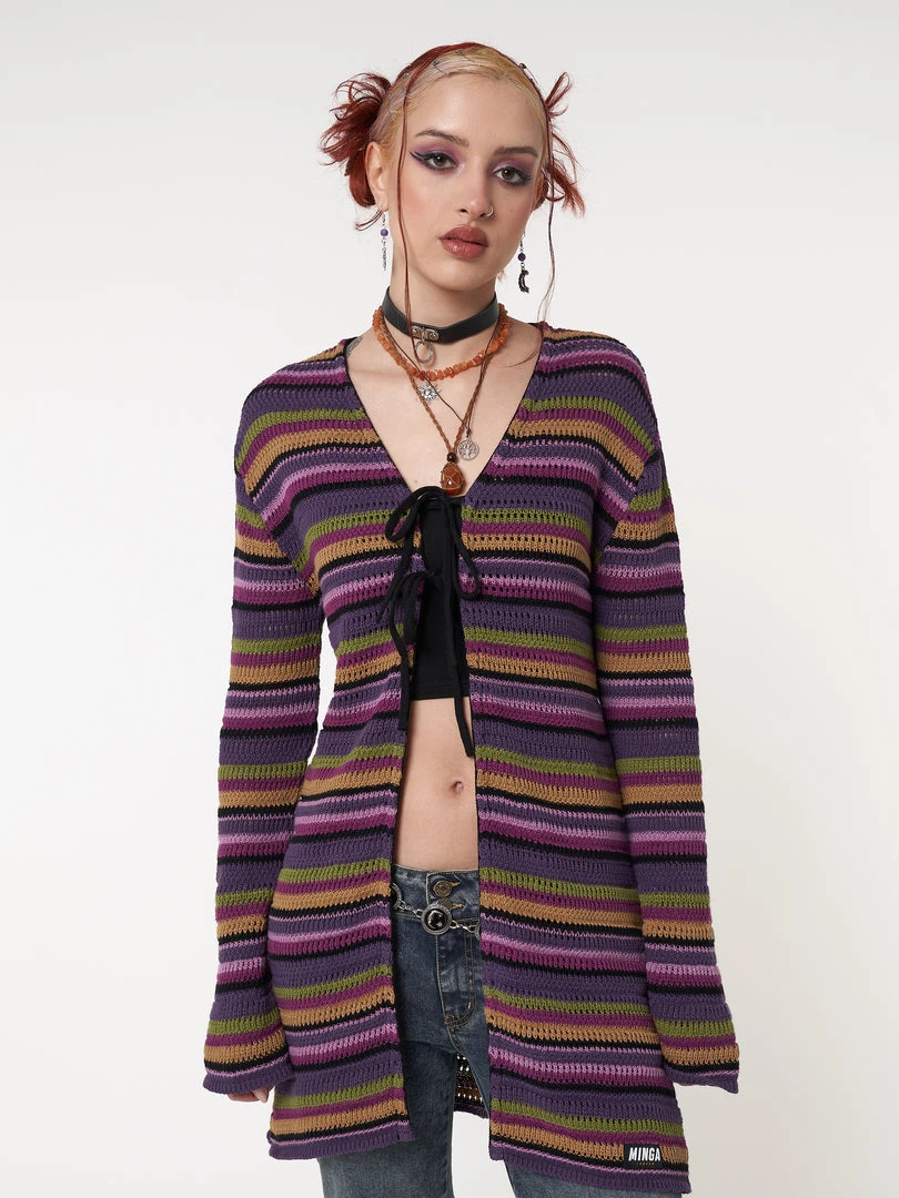 - Striped tie front knit cardigan