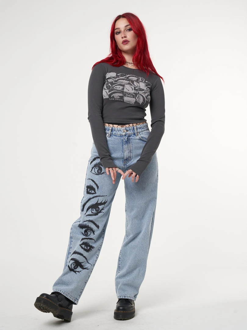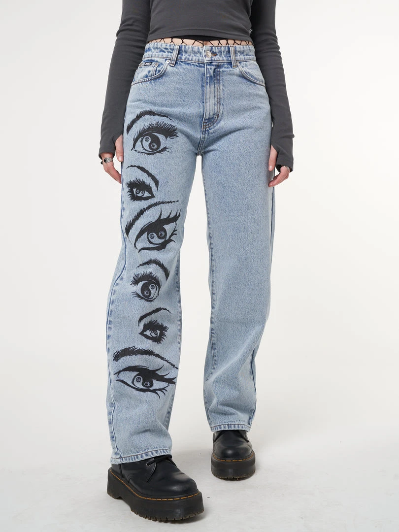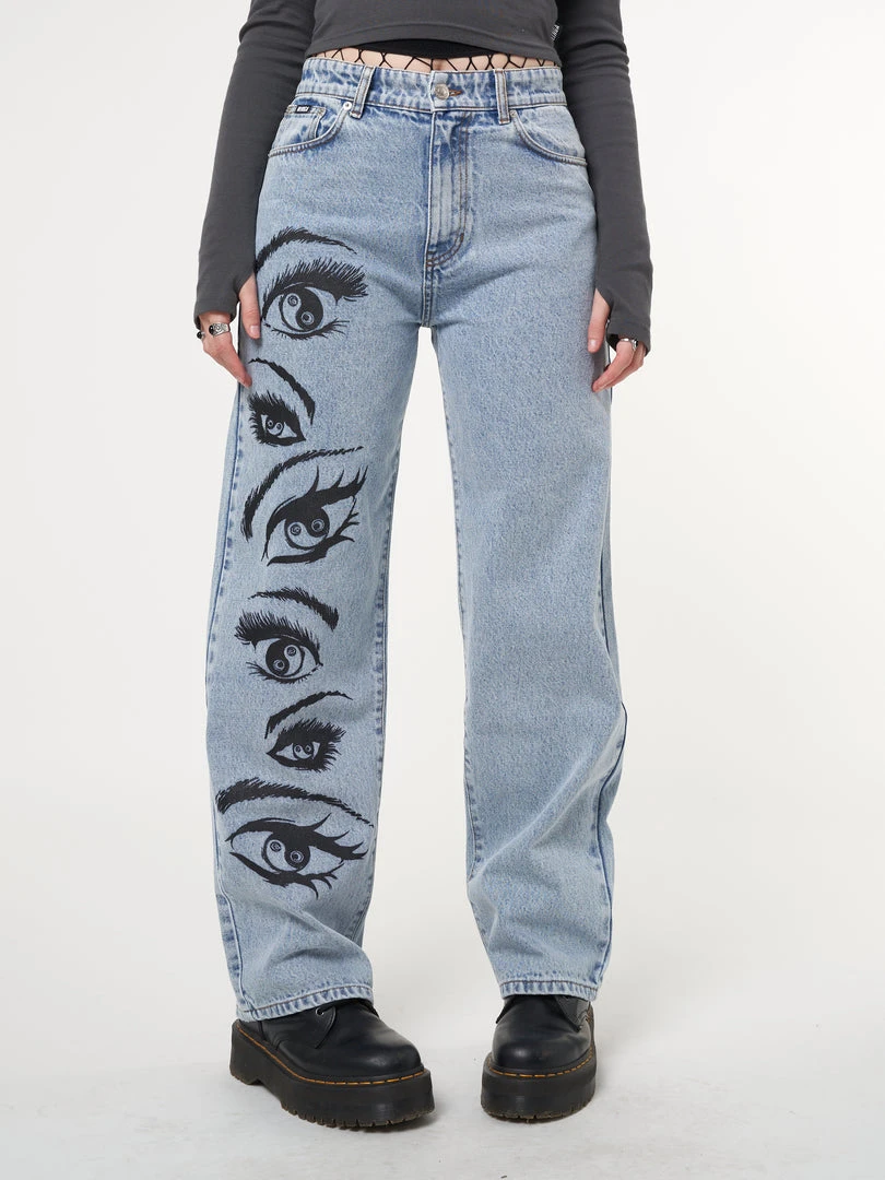 Minga London Most Wanted Yin Yang Eyes Printed Loose Fit Straight Leg Jeans