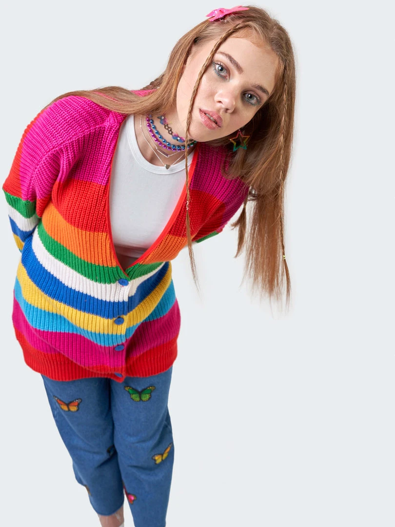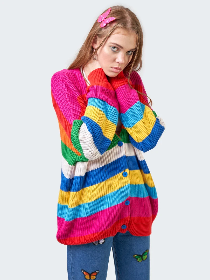 - Loose fit cardigan rainbow stripes