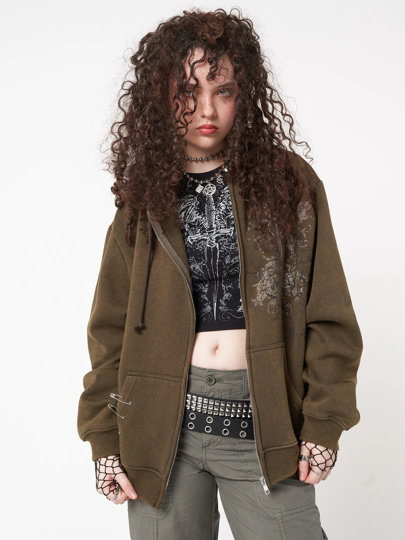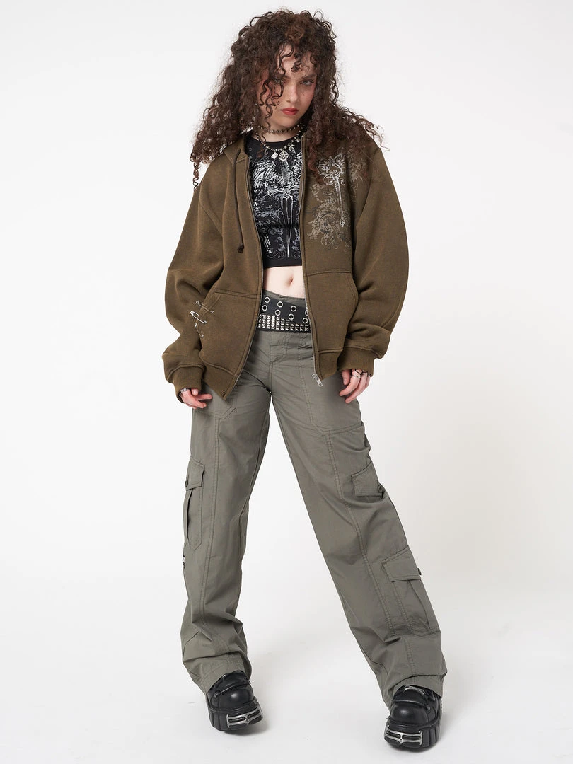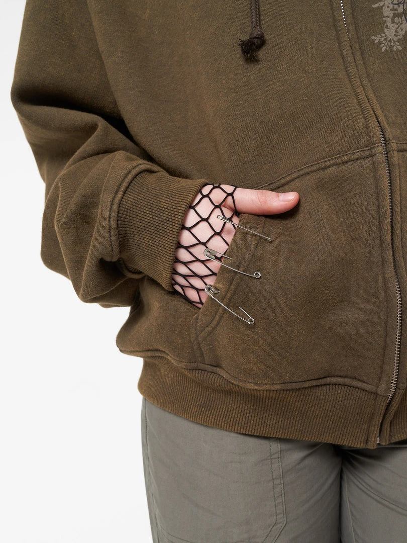 - Zip up hoodie jacket in washed moss green