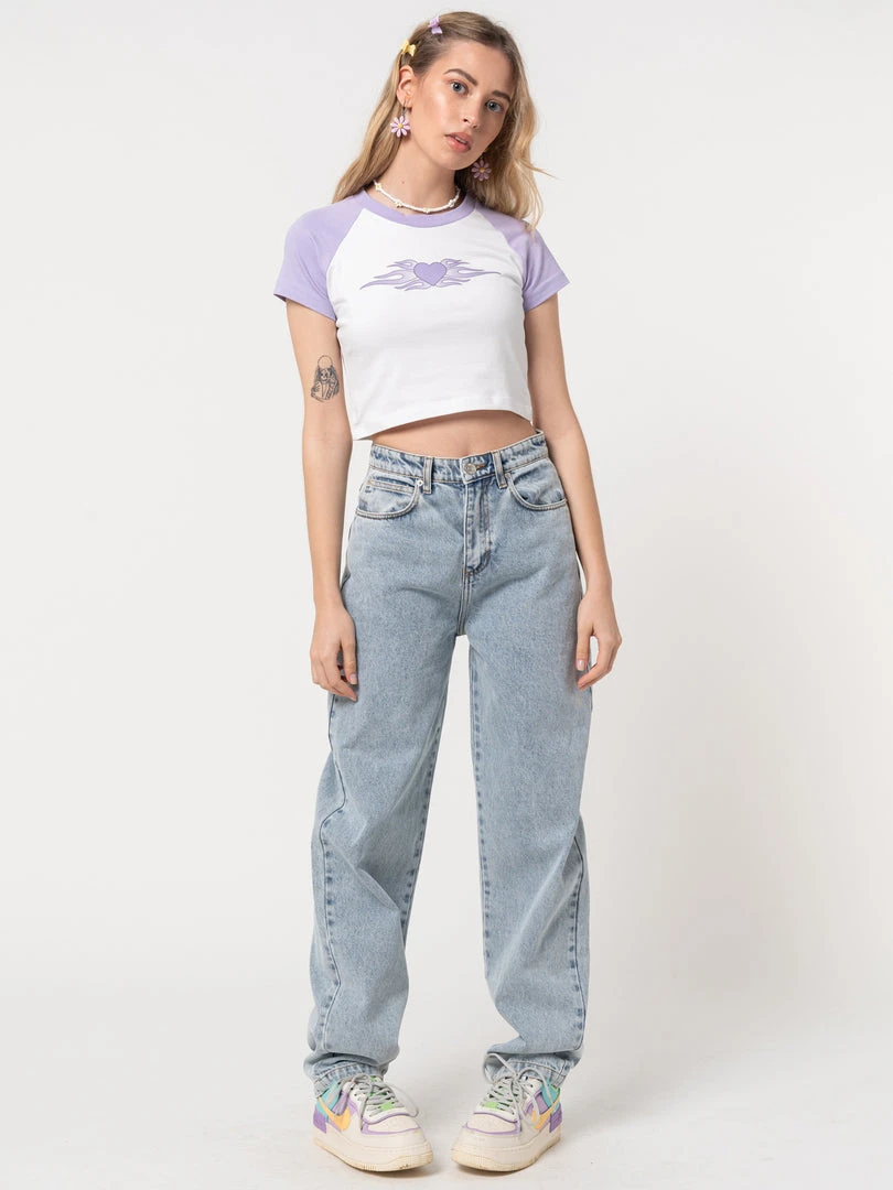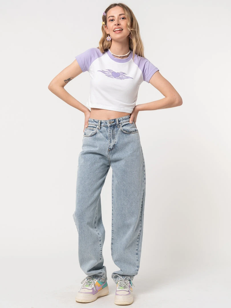 Minga London Tops & Tees Flaming Heart Raglan Crop Tee